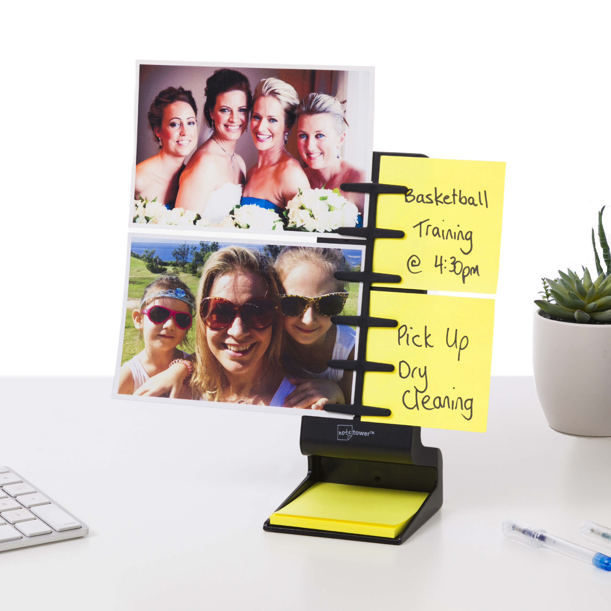 No more sticky notes falling off the edge of your monitor. The unique vertical tower keeps notes secure and tidy without messy tape, glue, pins or tacks.