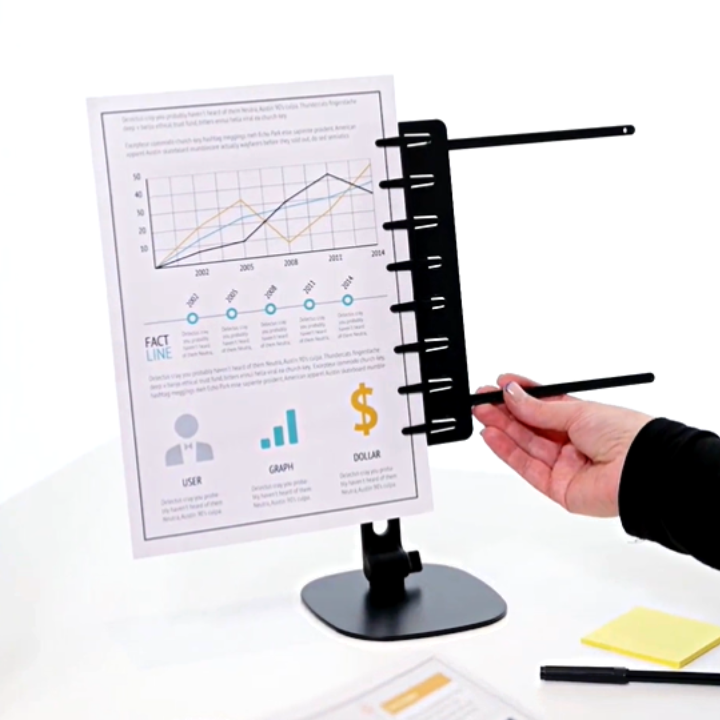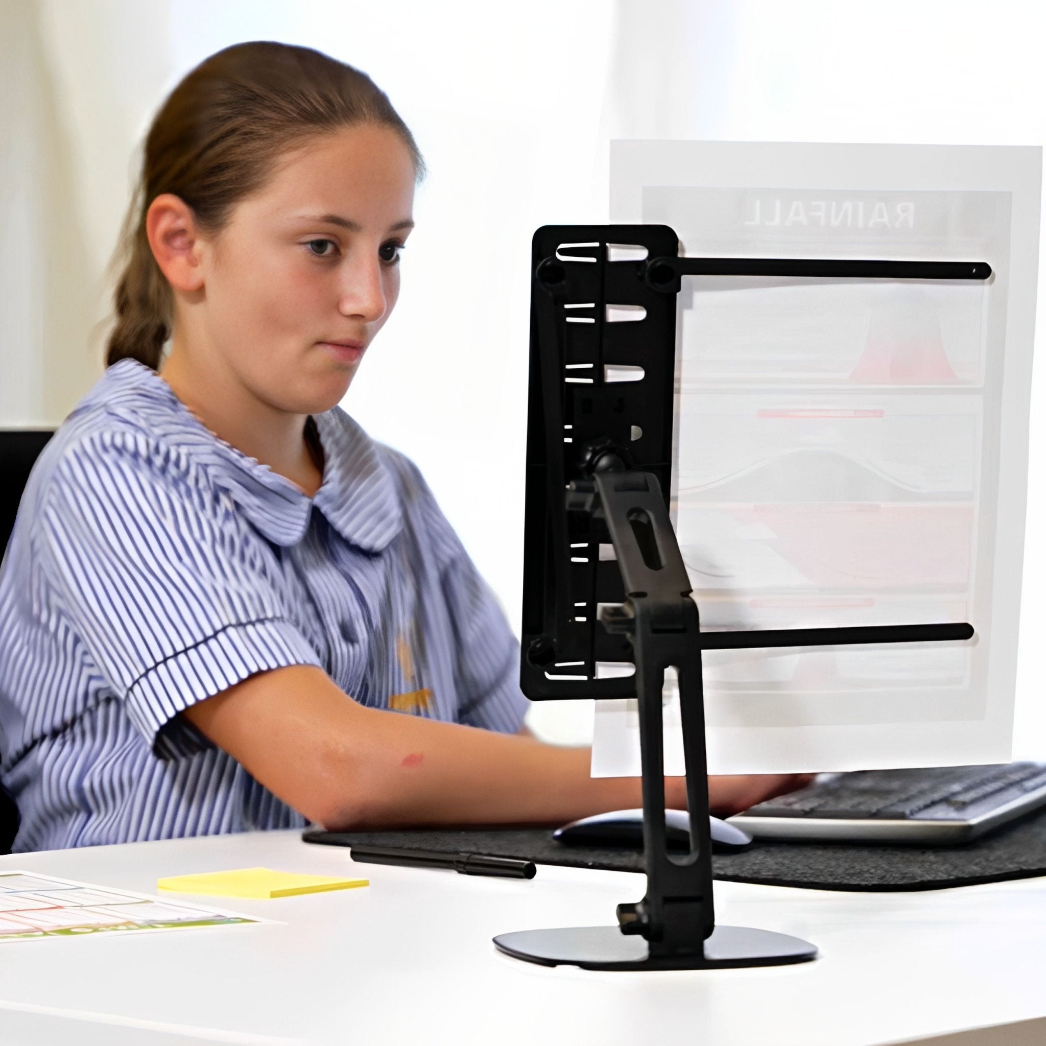 Office workers & students using dual page document holders have been proven to reduce eye & neck strain by up to 37%. This is attributed to documents being placed at eye level rather than on a desktop thereby mitigating excessive ey & neck movements.